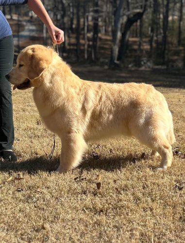 Teddy just turned one years old! I couldn’t be more thrilled with how he is turning out. He is sweet, extremely biddable, and easy to live with. He is maturing into a stunning young male, with gorgeous correct angles, well balanced, short coupled, deep through the chest. He has smooth flowing movement, and a friendly intelligent expression with spectacular pigment.